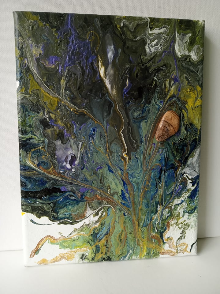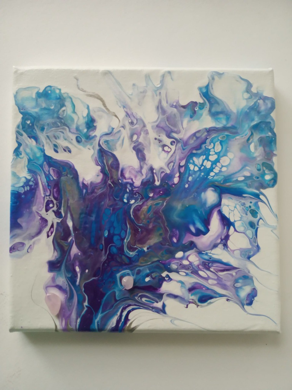 Používáme akrylové barvy, ředidla, silikonové oleje. Naléváme přímo na pláto.