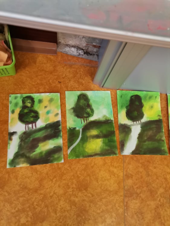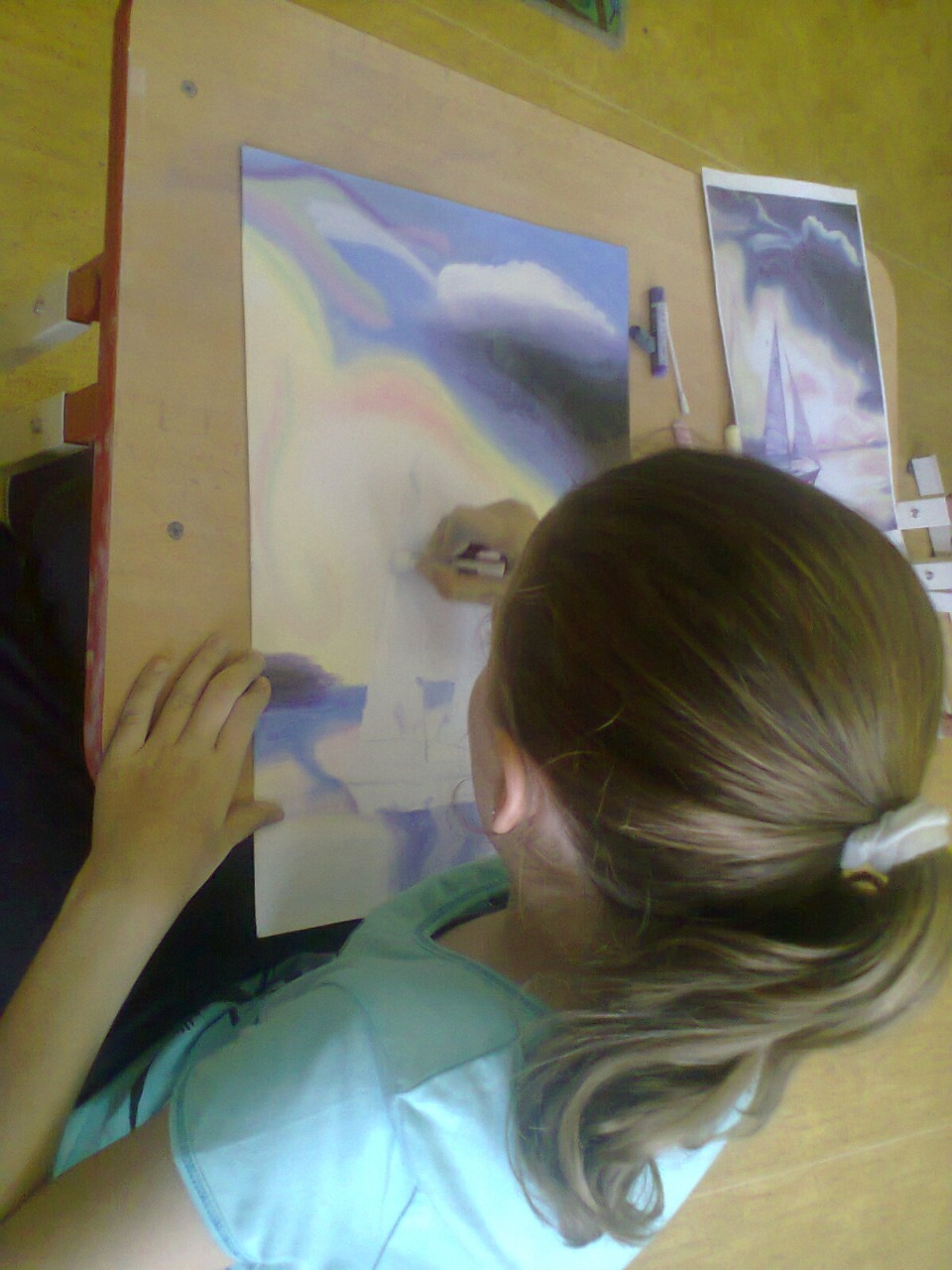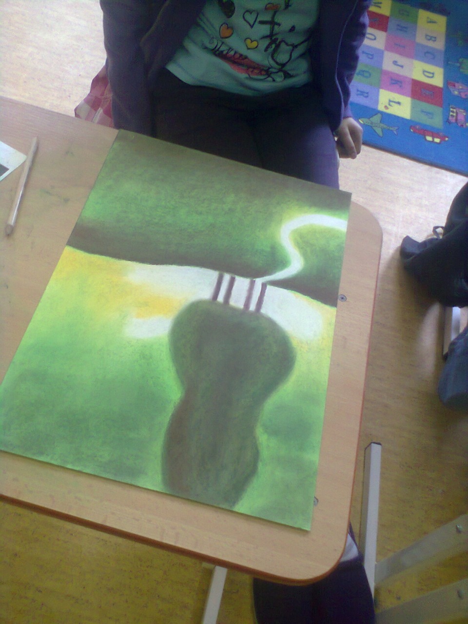 - suchý pastel, děti při malování mají přímý kontakt s barvami